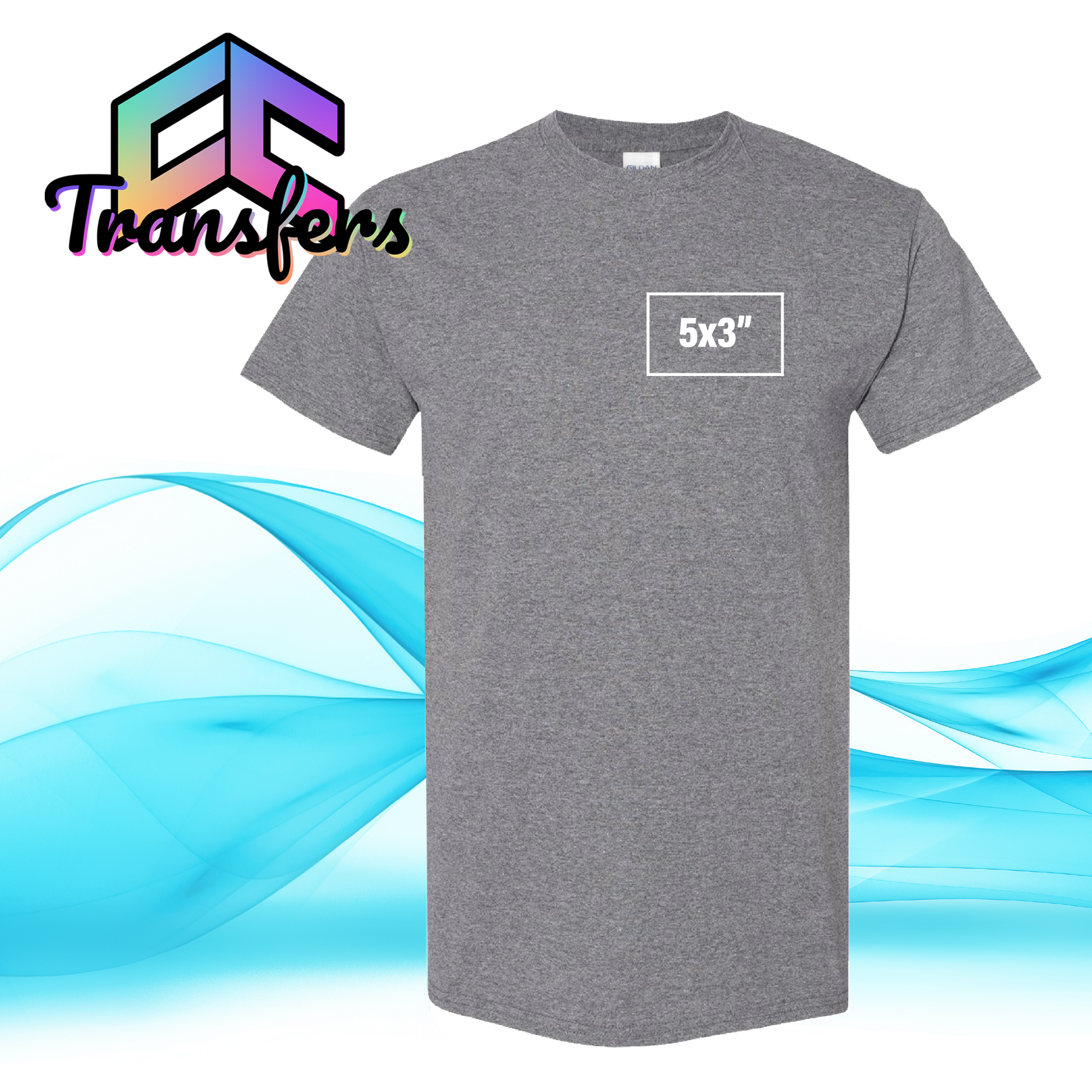 Transform almost any garment into a masterpiece with professional-grade DTF transfers. Start creating your custom design or upload your pre-made artwork today and let your creativity shine!